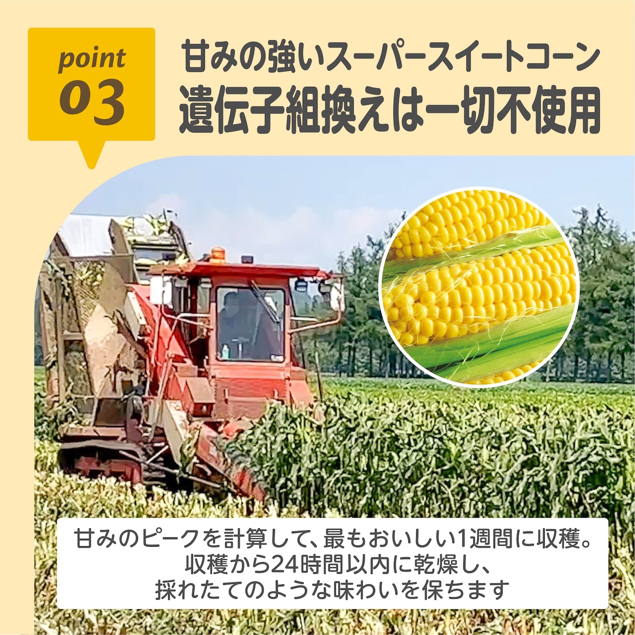 ・北海道産のスーパースイートコーンを100%使用。