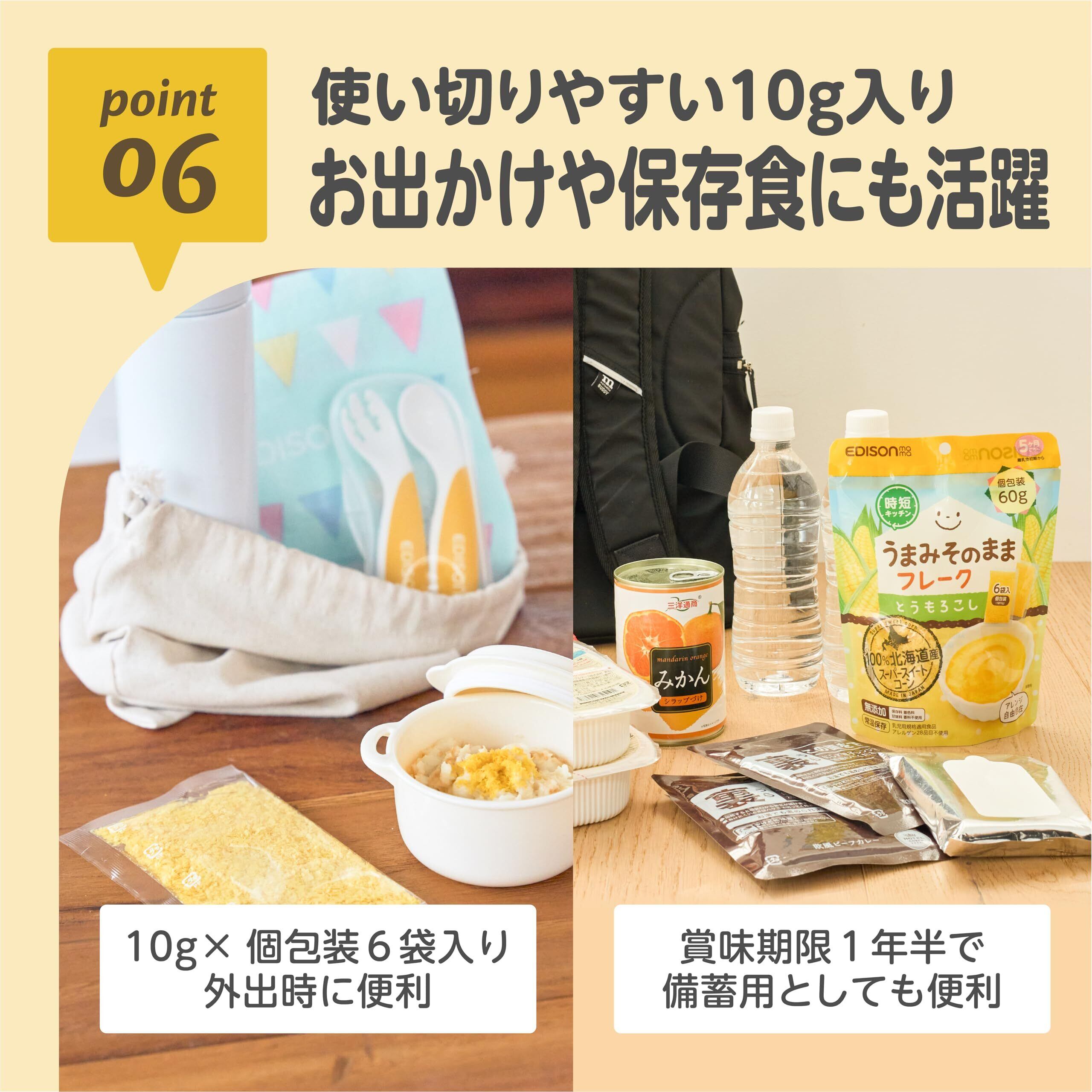 EDISONmama(エジソンママ) うまみそのままフレーク とうもろこし 内容量100g 5カ月~ お湯に溶かすとコーンペーストに 子供用から大人用メニューにも使える レシピ付き 北海道産スーパースイートコーン使用 アレルギーフリー