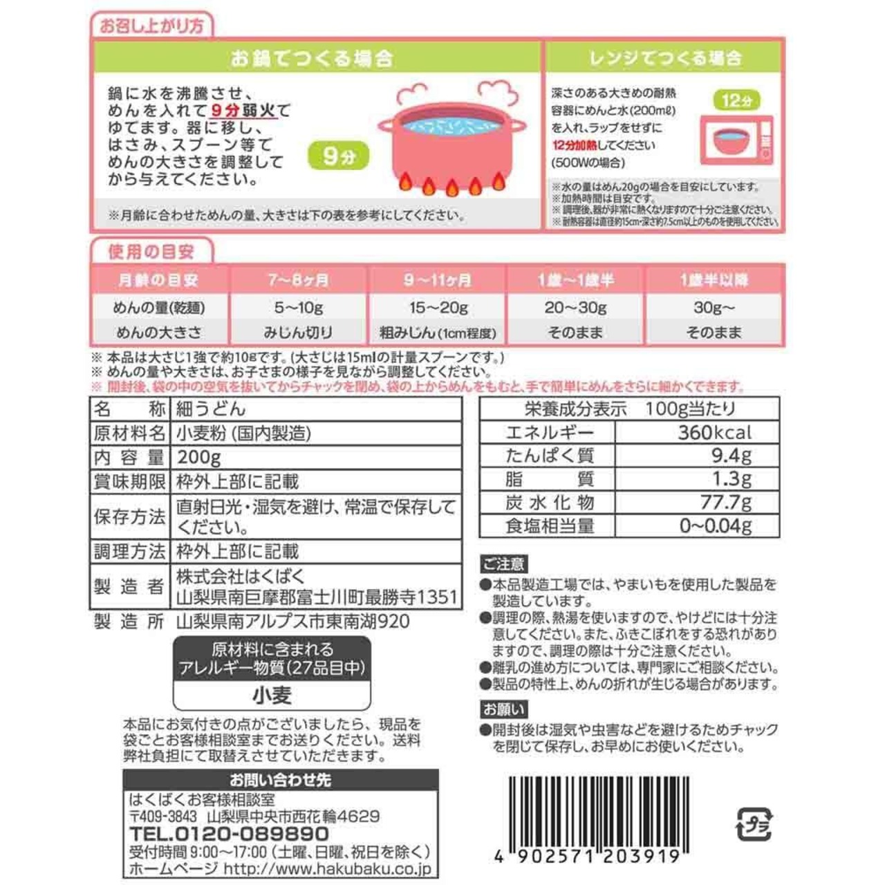 はくばく ベビーうどん 200g×4袋