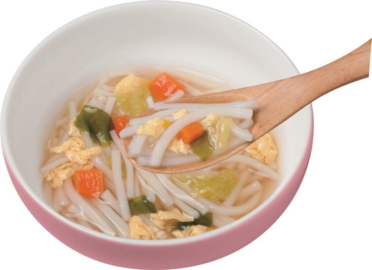1小さい鍋に水を沸騰させます。めんをパラパラと入れ、9分弱火でゆでます。2器に移し、はさみ・スプーン等でめんの大きさを調整してから与えてください。