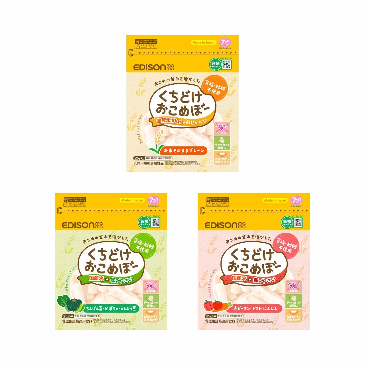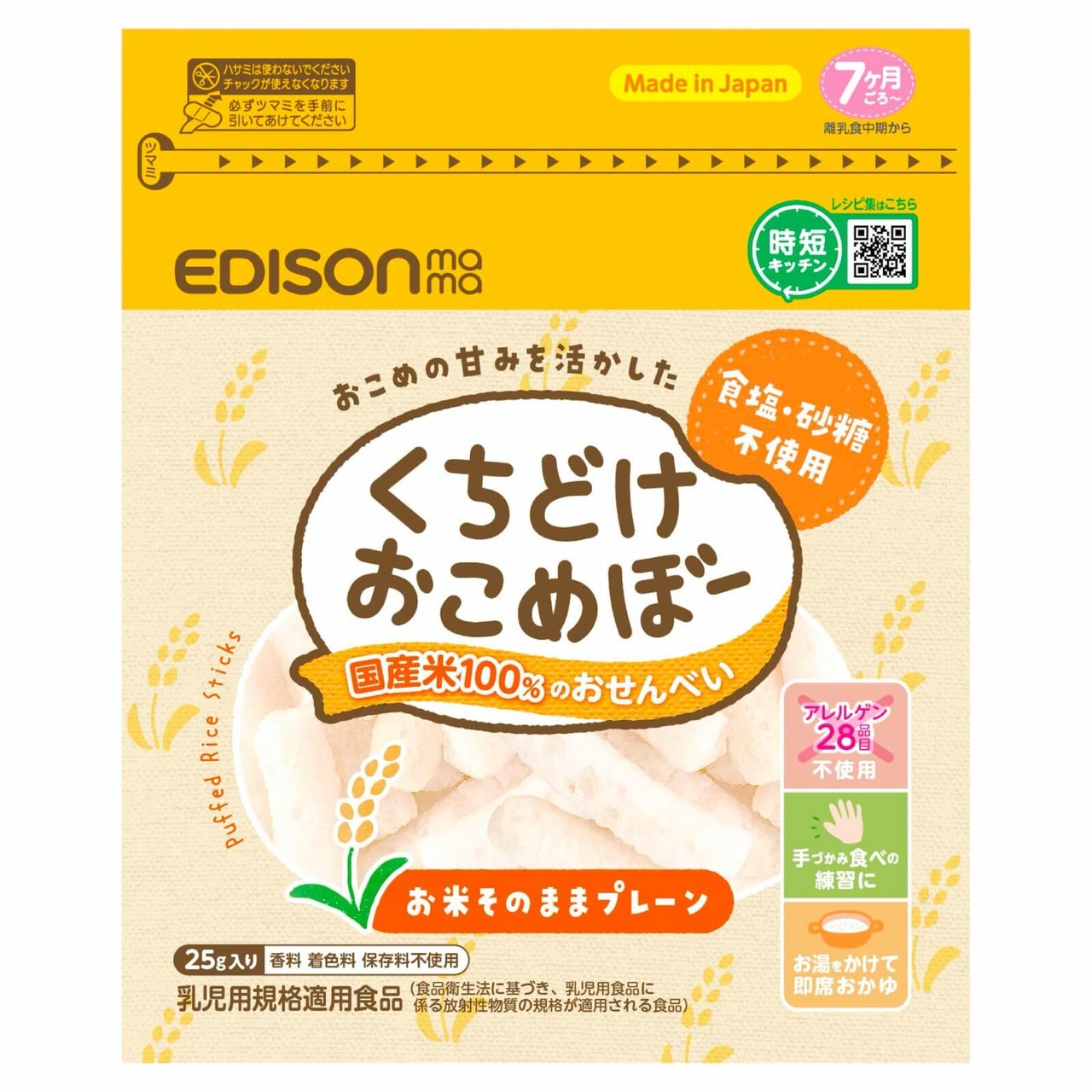 EDISONmama(エジソンママ) くちどけおこめぼー【プレーン】 7か月頃~ 25g 乳児用規格適用食品 特定原材料8品目不使用 食塩砂糖不使用 即席おかゆ 手づかみ食べ (3個)
