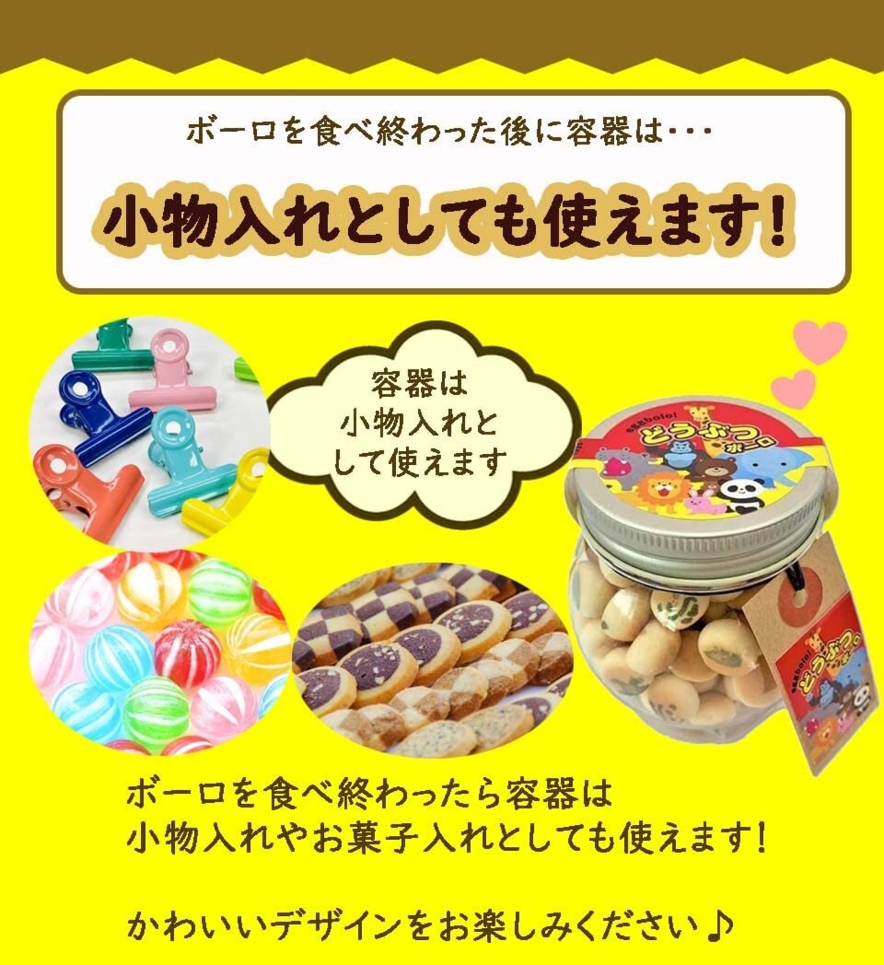 ボーロを食べ終わったら容器は小物入れやお菓子入れとしても使えます! かわいいデザインをお楽しみください