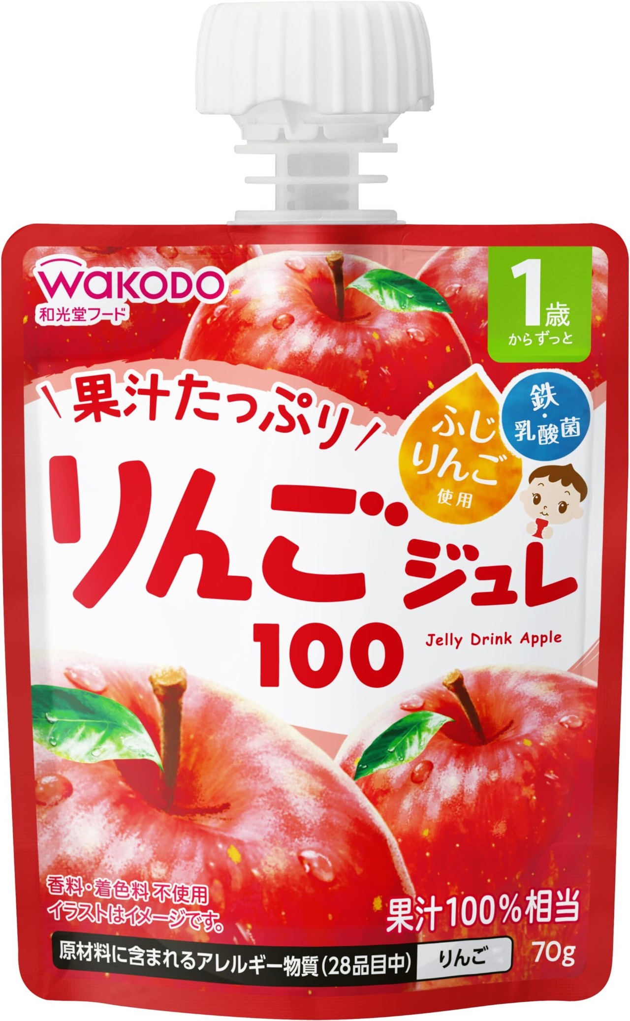 【りんご果汁100%相当】 1歳から飲める果物100%相当のジュレ【ふじりんご使用】 甘味・酸味のバランスが良い人気品種「ぶじりんご」を使用。 【鉄、乳酸菌入り】 お子さまにとらせたい、鉄・乳酸菌入り。 ・ジュレタイプなので、液体飲料よりこぼしにくい ・常温保存可能(未開封時) ・香料、着色料不使用