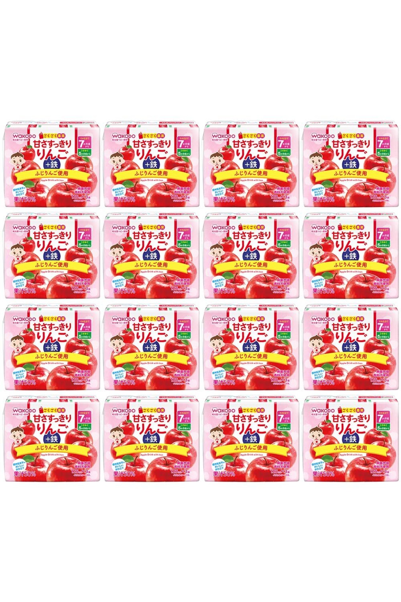 和光堂 ごくごく果実 甘さすっきりりんご+鉄 125ml×48本 [7か月頃から] (125ml×3本パック×16個)