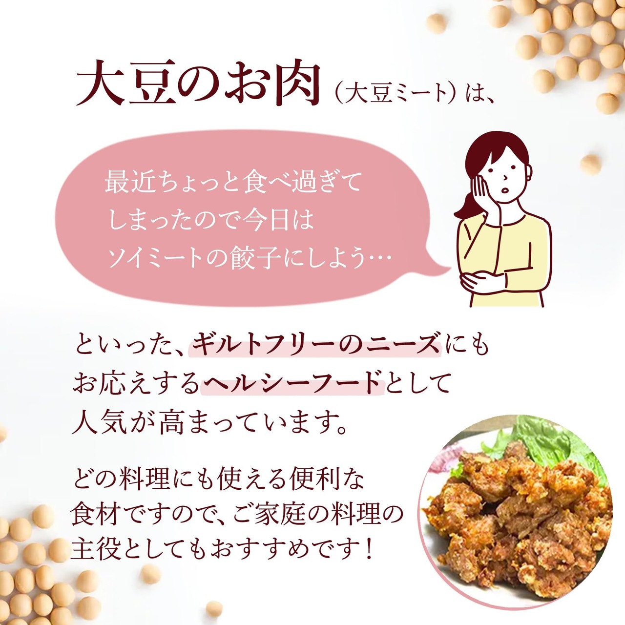 「大豆のお肉」は原料に丸大豆のみを使用。
