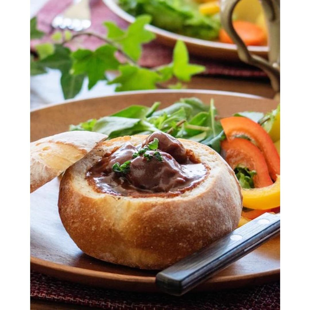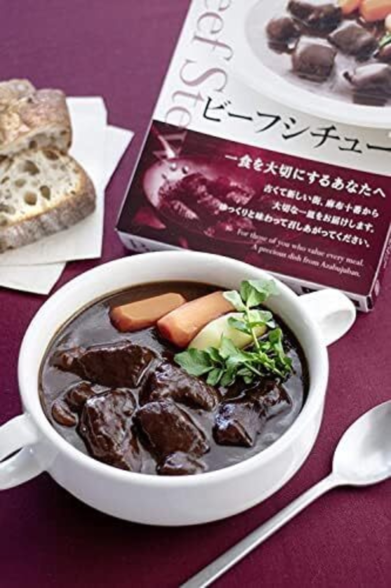 【おすすめの召しあがり方】お好きな温野菜を温めたビーフシチューに加えるだけで、見た目も鮮やかな一皿に仕上がります。バゲットはもちろん、ごはんにもよく合います。