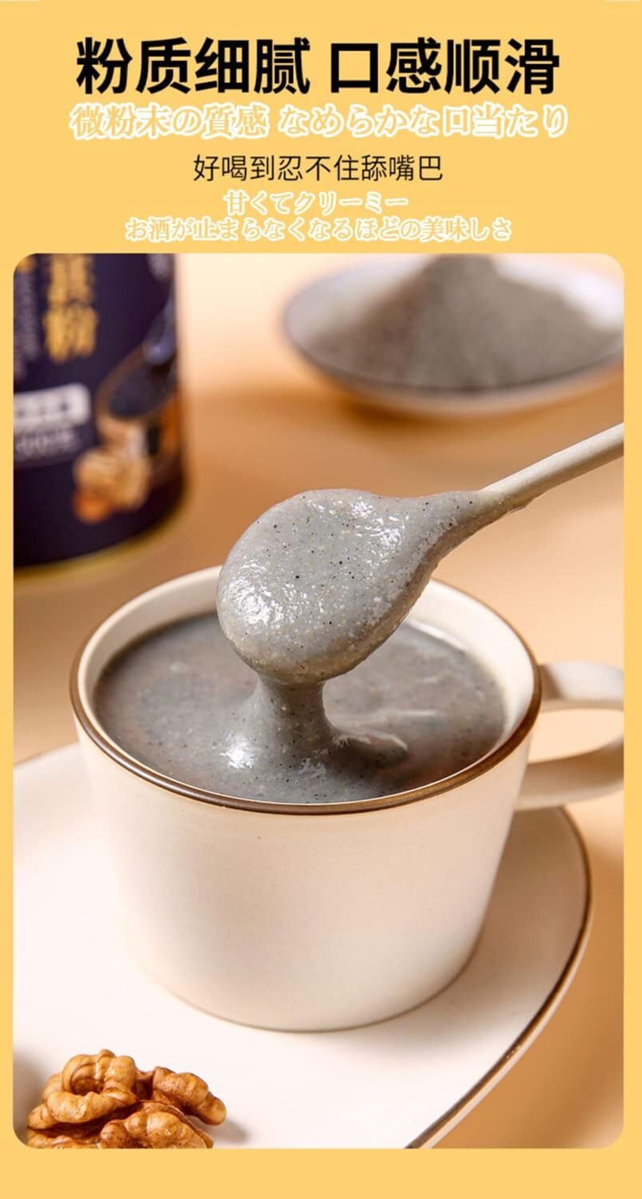 黑芝麻糊 シルキーな口当たり 甘くて香ばしい 黒ごまペースト ゴマペースト 中国食品 黒ゴマ・クルミ・ヤム・桑の実パウダー 即席おかゆ 食事代わりおかゆ 便利なおやつ デザート おいしいおやつ ギフト デザート シリアル 朝食 五穀雑穀 食事代わりパウダー 栄養 健康(砂糖不使用, 1罐装)