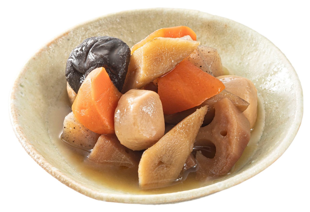 原材料:こんにゃく(韓国製造)、加工れんこん、さといも、にんじん、ごぼう、しいたけ水煮、しょうゆ、米発酵調味料、砂糖、ぶどう糖果糖液糖、塩こうじ、チキンエキス、かつお節エキス、醸造酢、食塩/水酸化Ca、酸化防止剤(ビタミンC)、(一部に小麦・大豆・鶏肉を含む)