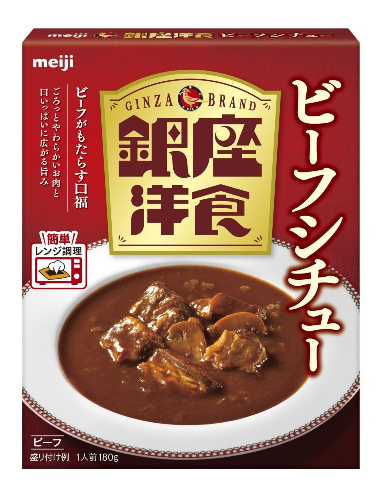 銀座カリーで培った洋食技術である二段仕込みブイヨンとソテーオニオンで旨味を引き出したソースに、赤ワインを使用する事でコク深いごはんにあう味わいを実現しました。牛肉を45g(銀座カリーの2倍以上量)とマッシュルーム贅沢に使用し、おいしさにこだわったビーフシチュー。レンジパウチ対応になり、簡便性を向上させました