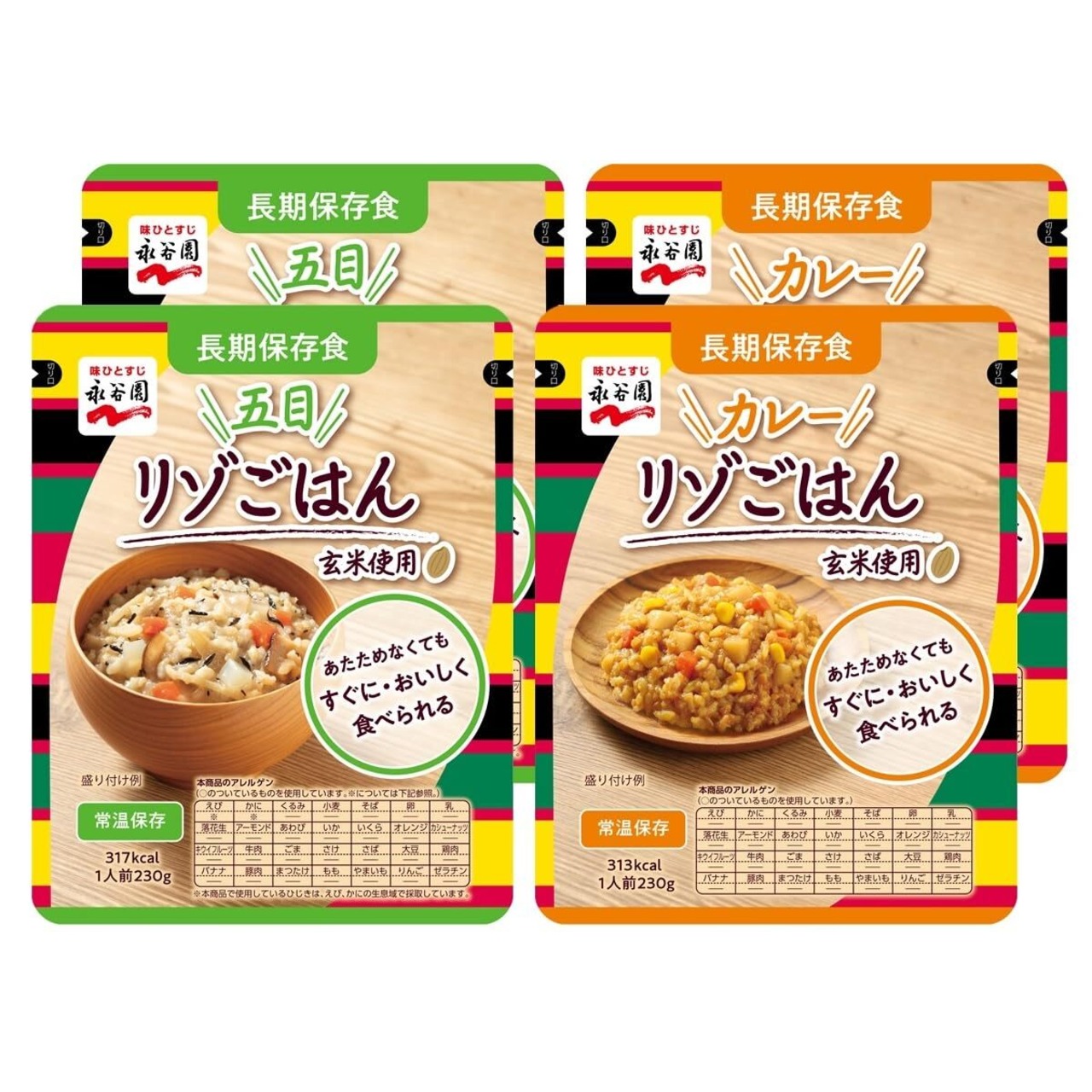永谷園 長期保存食リゾごはんアソート (五目リゾごはん×2個、カレーリゾごはん×2個)【セット買い】【長期保存】