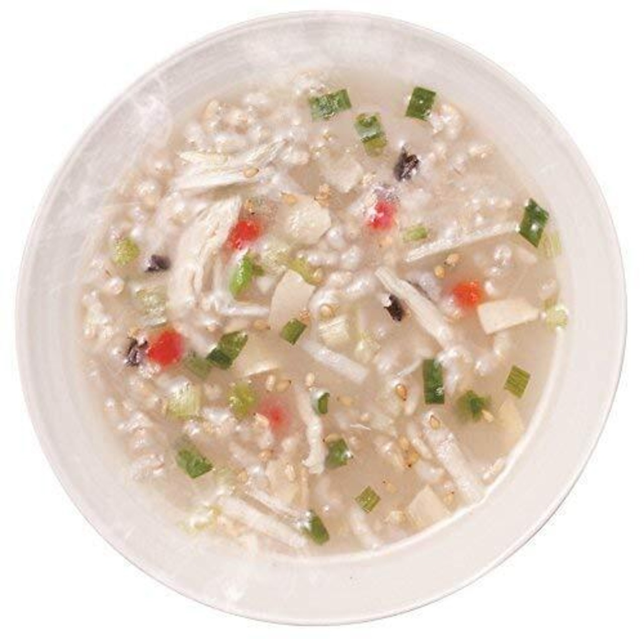 鶏の旨みがとけ込んだスープに、生姜をしっかり効かせました。赤ピーマンやネギなどの具が彩りを添えて、雑穀の食感も楽しめます。あたたかパワー生姜配合。
