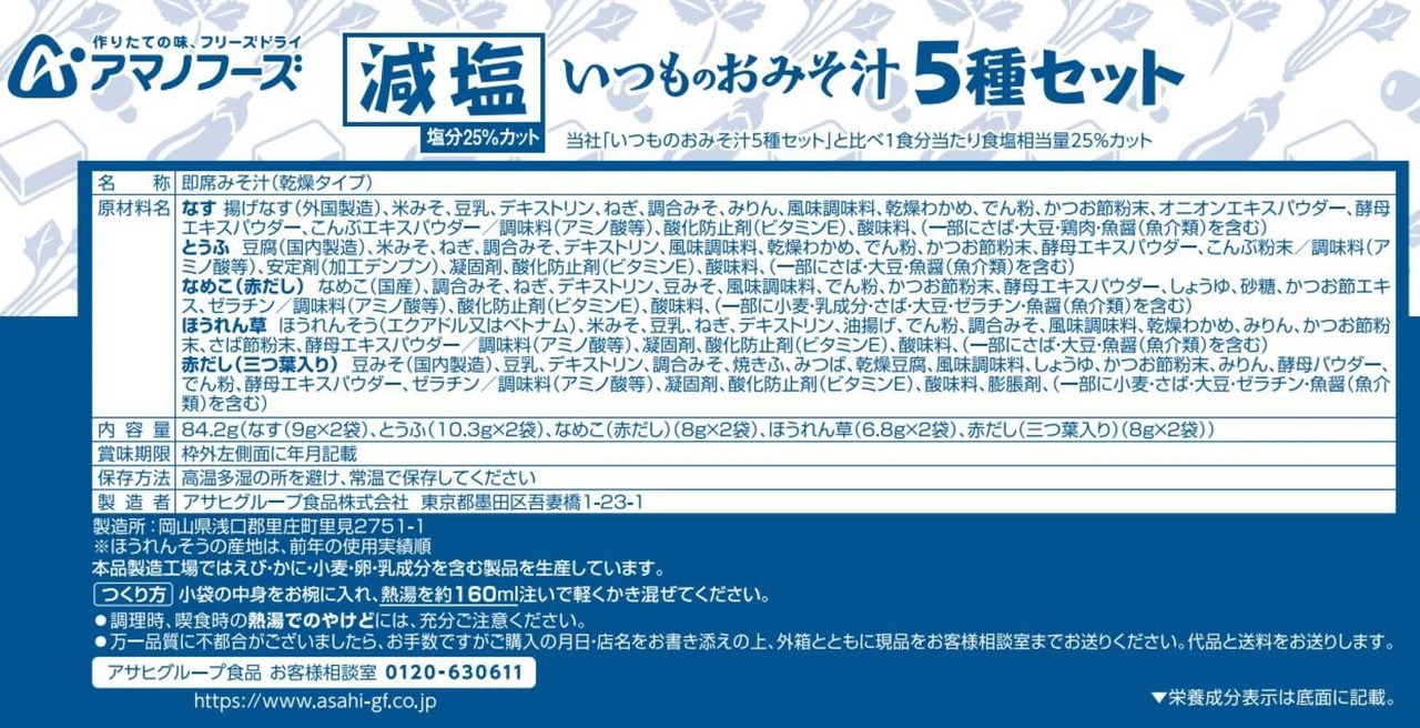 アマノフーズ 減塩いつものおみそ汁 10袋入り(5種各2袋)