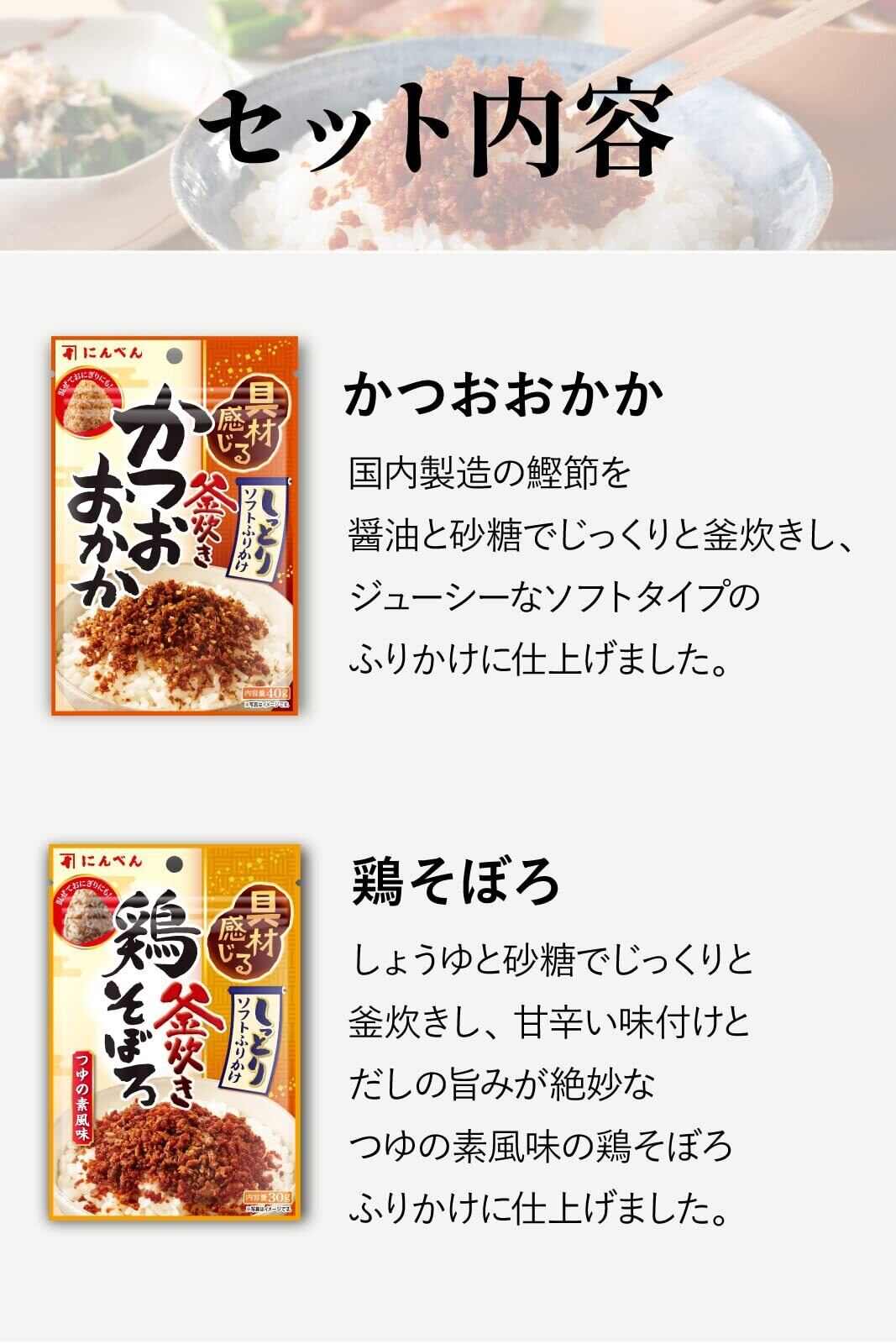 【お試しセット】にんべん しっとりソフト 釜炊きふりかけセット 4種 計8袋(かつおおかか40g×2袋・鶏そぼろ30g×2袋・牛そぼろ30g×2袋・鮭そぼろ30g×2袋) 1699年創業 鰹節・だし専門店