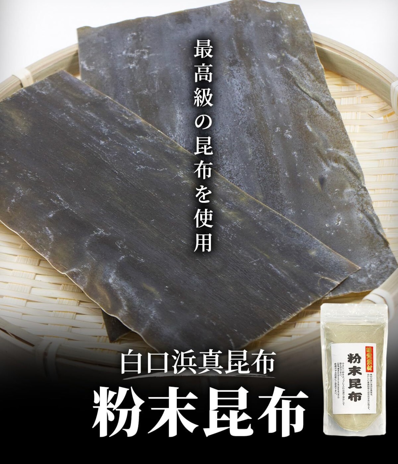まろやかで上品な味わいと甘味が特徴の真昆布を使いやすく粉末にしました。 「良い出汁が取れる真(まこと)の昆布」と言われたことから真昆布と名付けられるほどの最高級の出汁が味わうことができます。