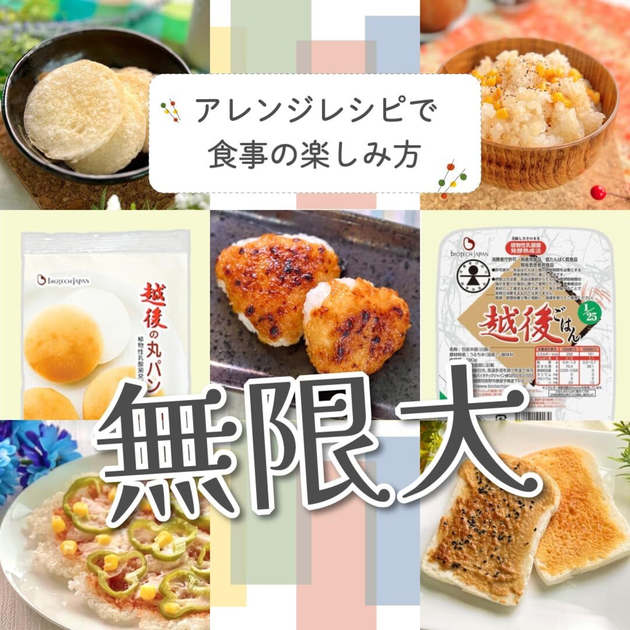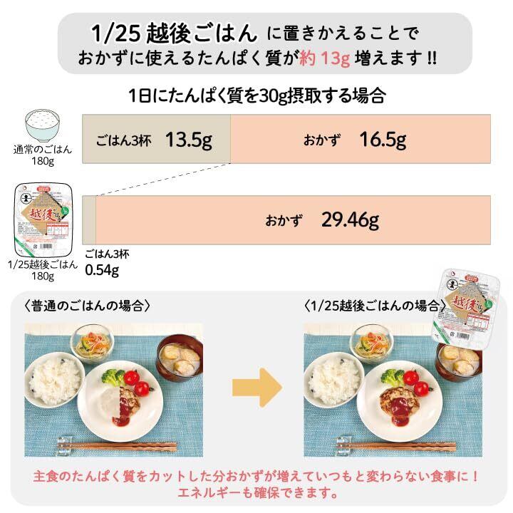 主食のごはんを低たんぱく食品(越後シリーズ)に置き換えて、おかずのボリュームアップ