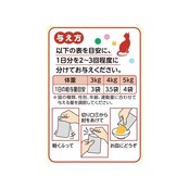 ・パッケージ記載の表を目安に、1日分を2~3回程度に分けてお与えください。