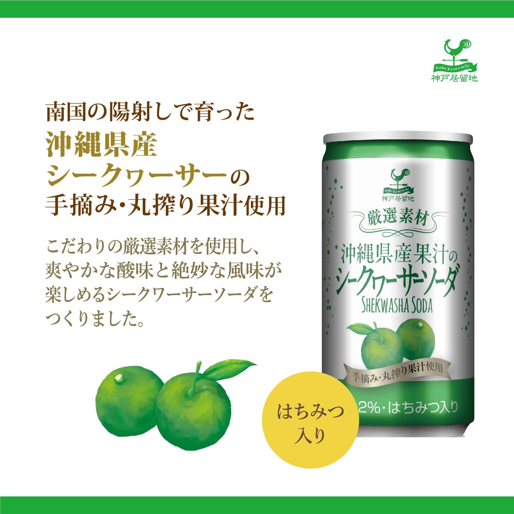 神戸居留地 厳選素材 沖縄県産果汁のシークワーサーソーダ 缶 185ml ×20本 飲み切りサイズ [ 手摘み シークアーサ 炭酸飲料 炭酸ジュース ]