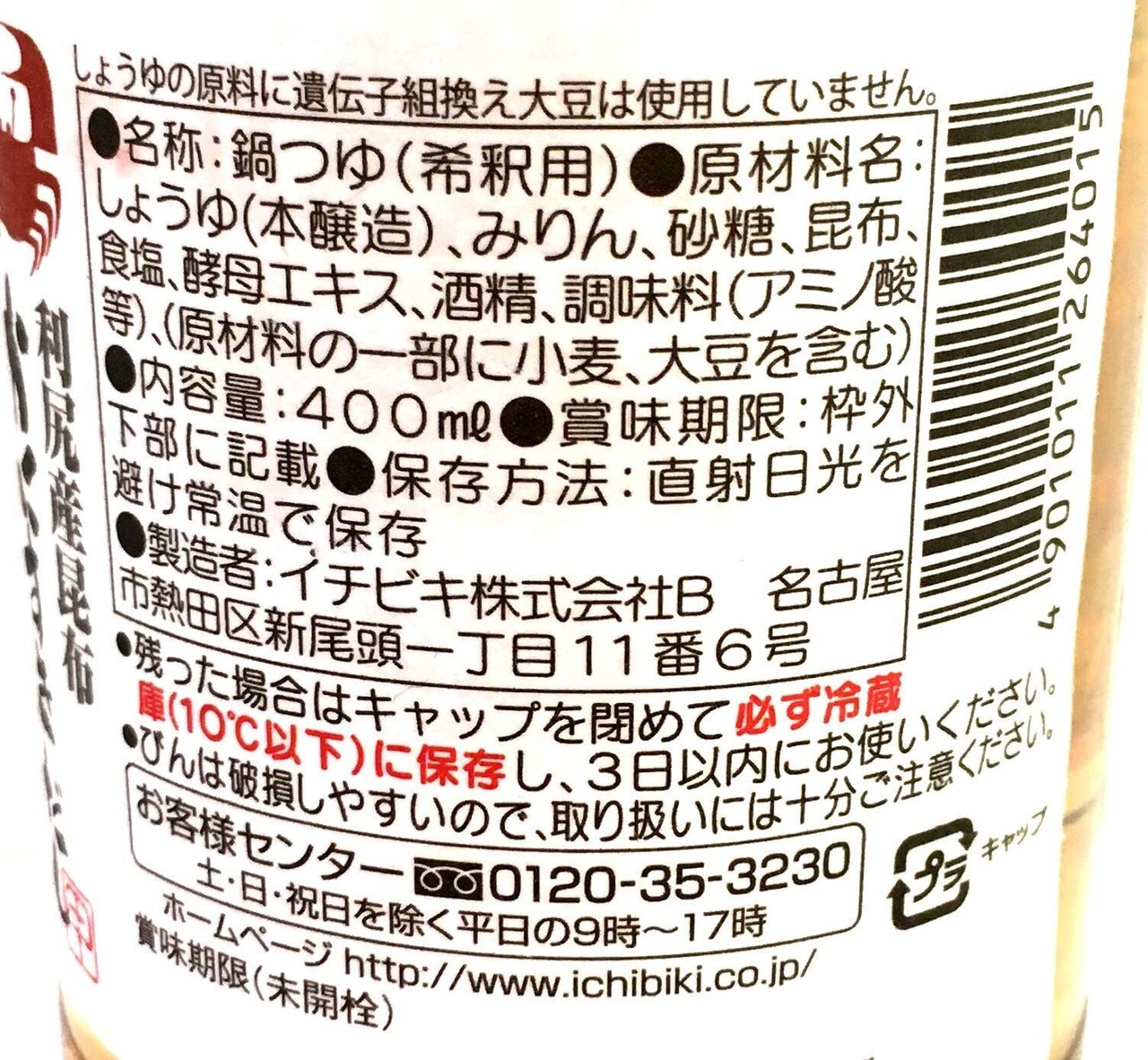 イチビキ かに料理専門店 甲羅本店 利尻産昆布 かにすきだし 3倍濃縮 400ml