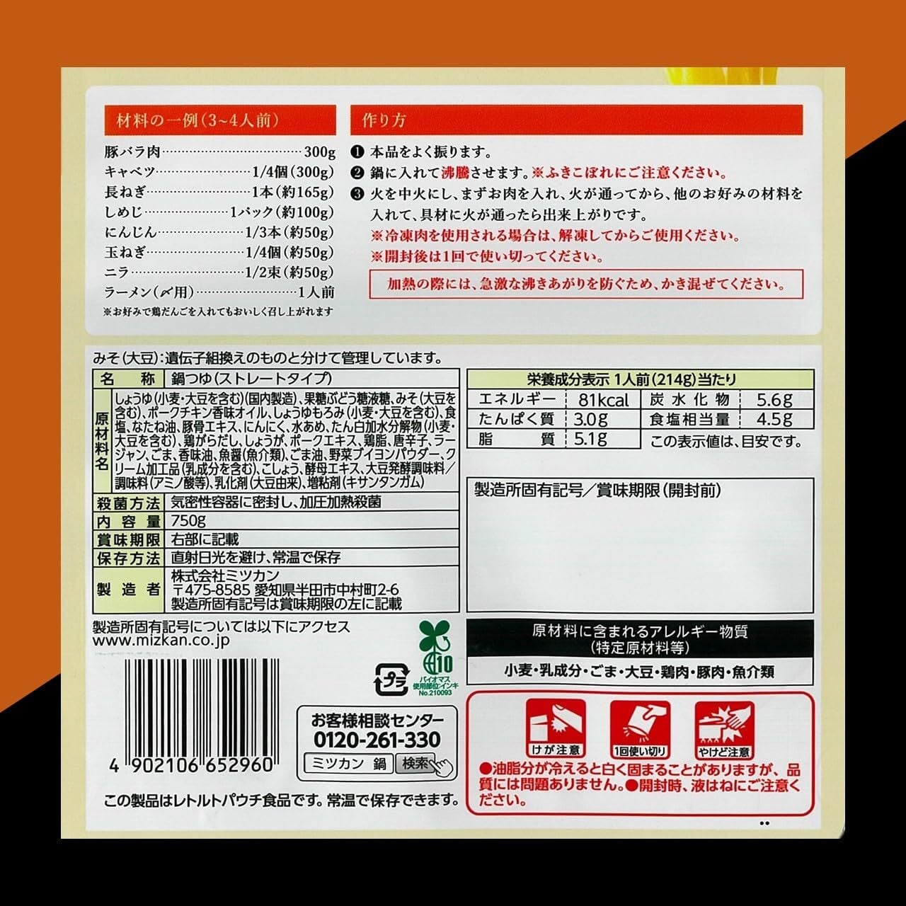 ミツカン 札幌味噌拉麺専門店けやき監修 札幌味噌鍋つゆ (名店監修) 鍋の素 750g×4袋