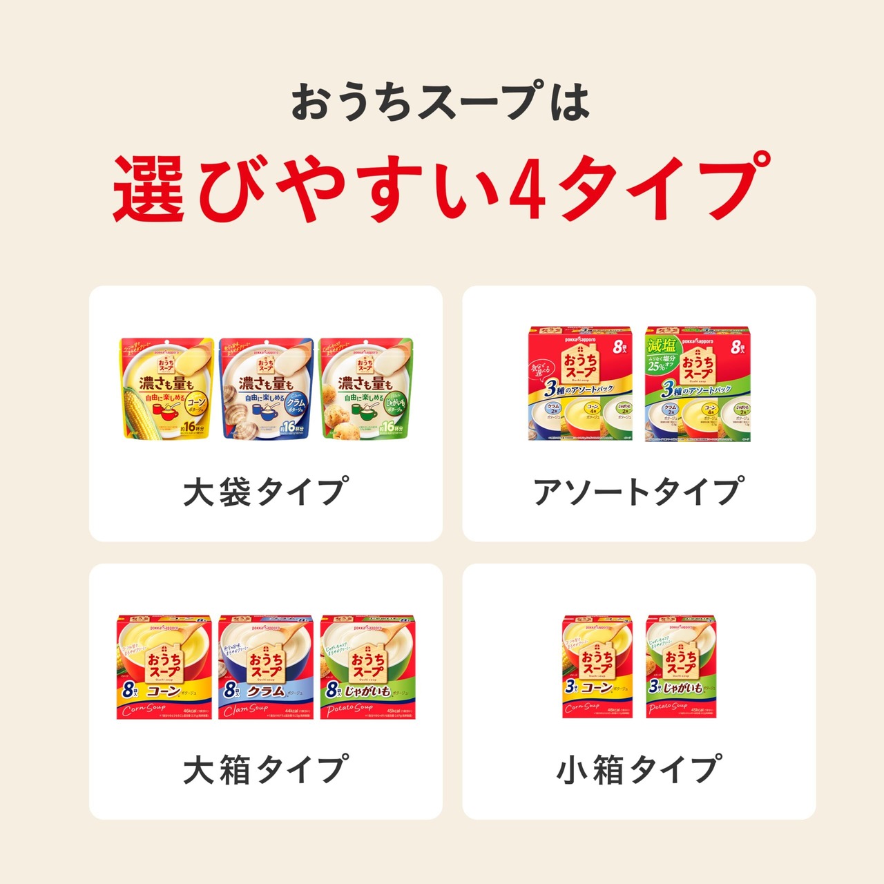 定番のコーン*スープがたっぷり約16杯分楽しめる大容量タイプです。