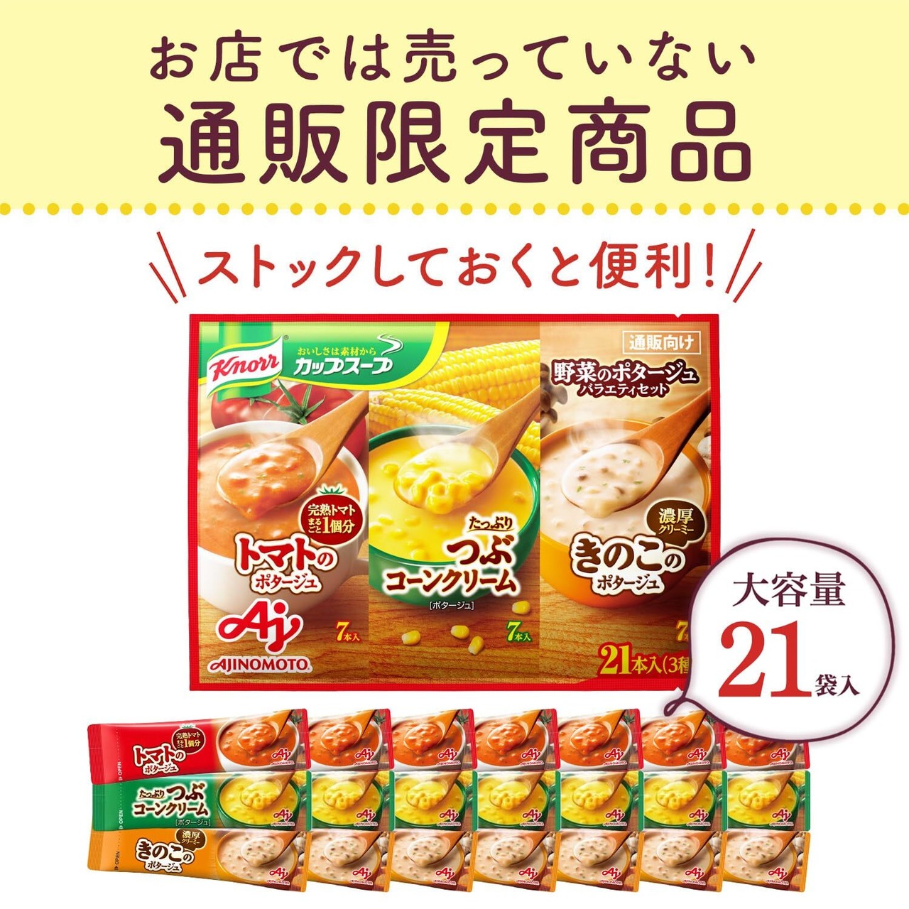 味の素 クノールカップスープ野菜のポタージュバラエティセット21本入りは、つぶたっぷりコーンクリーム、