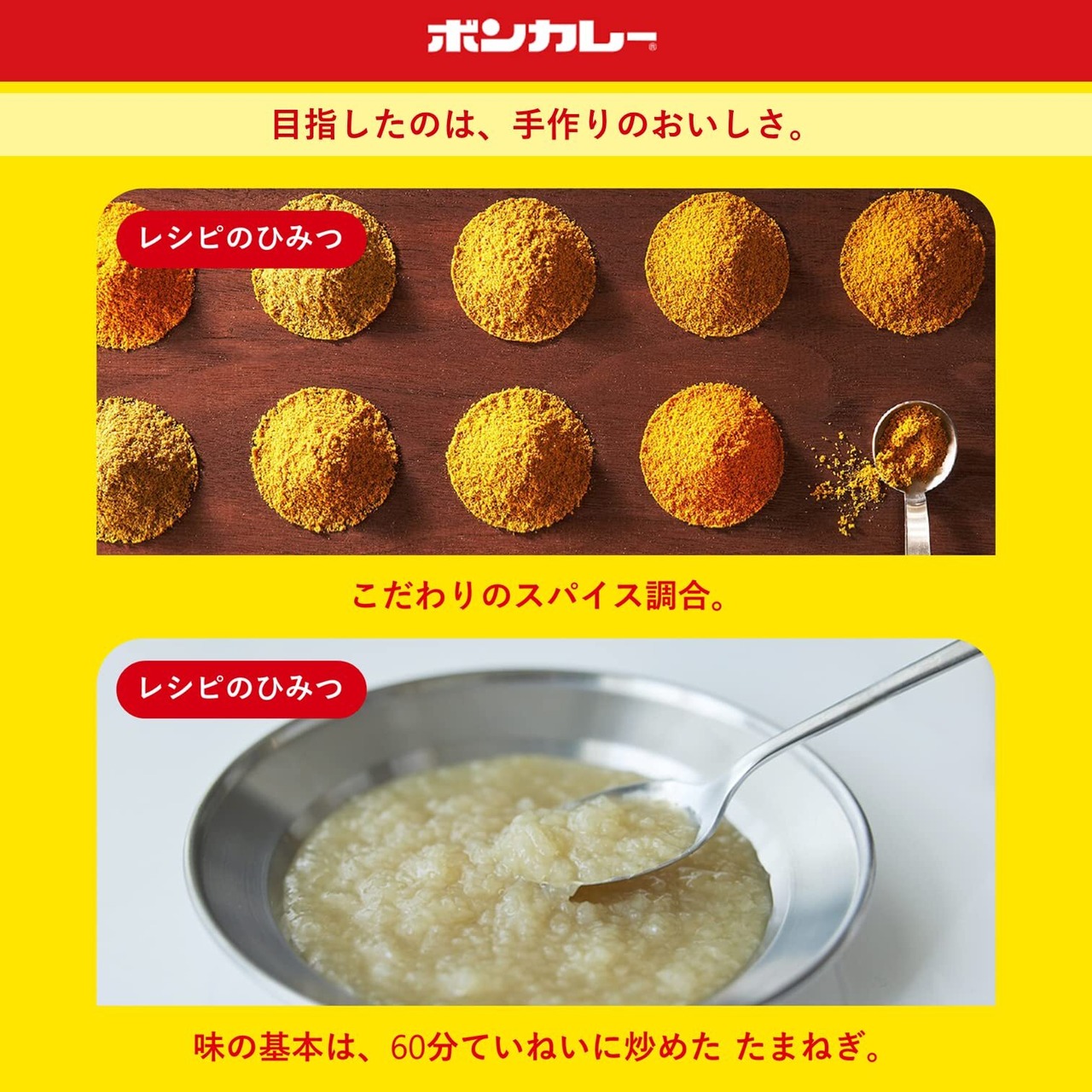 原材料: 野菜(じゃがいも(国産)、にんじん)、ソテーオニオン、牛肉、小麦粉、食用油脂、砂糖、ブイヨン(ビーフ、チキン、ポーク)、チャツネ、食塩、カレー粉、カレーペースト、りんごペースト、脱脂粉乳、乳等を主要原料とする食品、香辛料、ソテーオニオンエキス、酵母エキス、エシャロットペースト/増粘剤(加工デンプン)、調味料(アミノ酸等)、カラメル色素、酸味料、パプリカ色素、リンゴ抽出物、香料、(一部に小麦・乳成分・牛肉・大豆・鶏肉・バナナ・豚肉・りんごを含む)