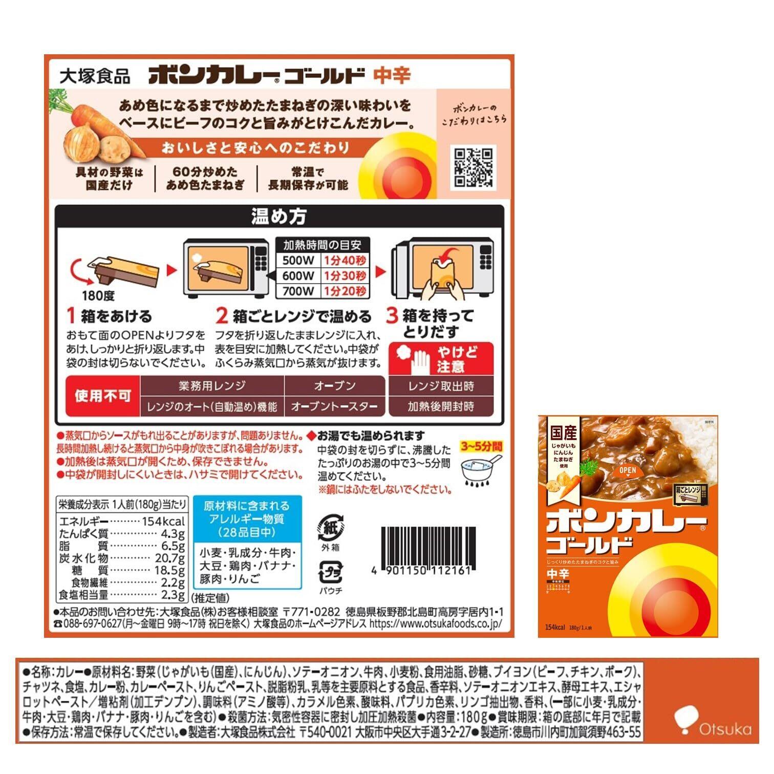 大塚食品 ボンカレーゴールド 中辛 180g×5個 レンジ調理対応