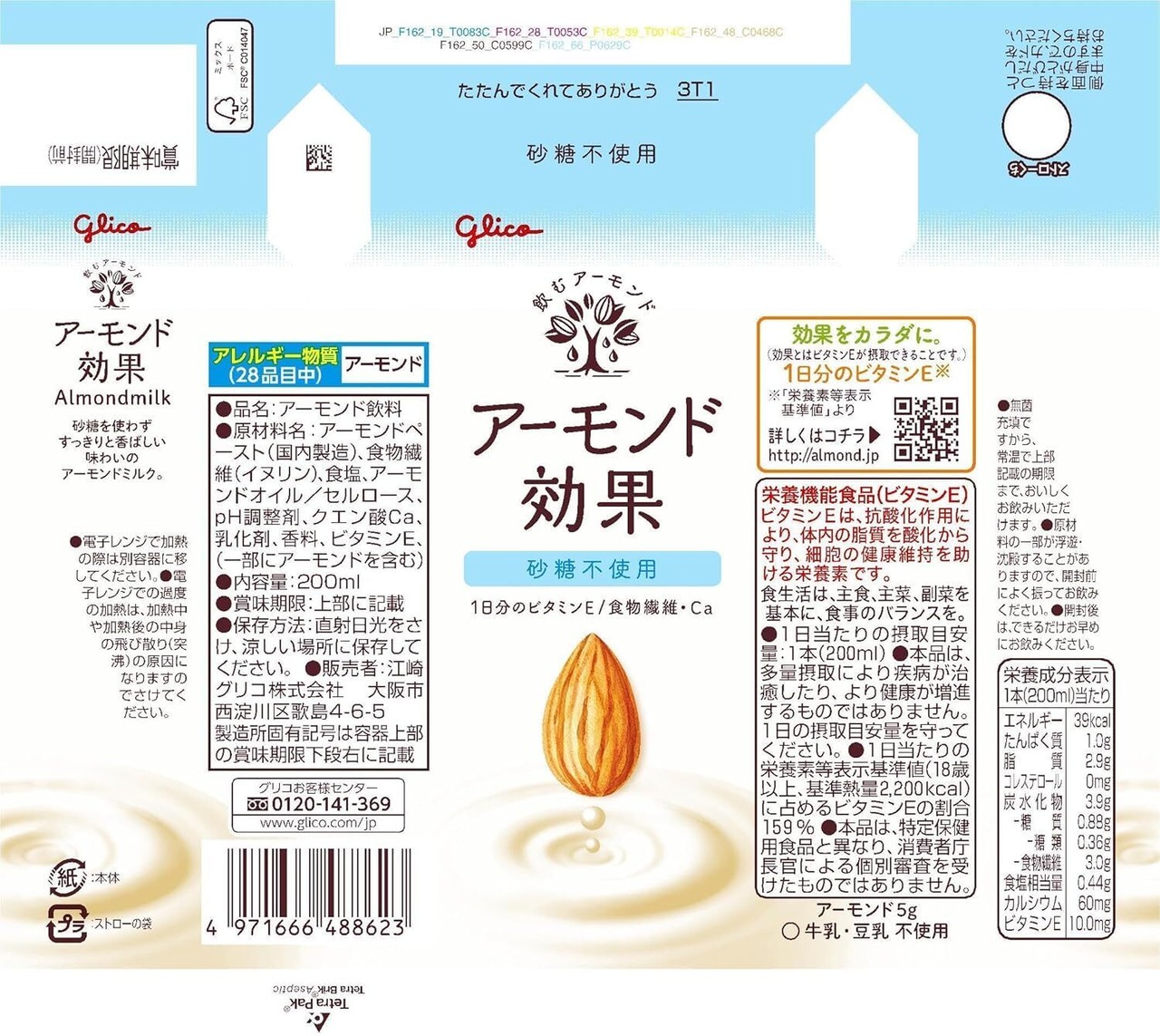 グリコ アーモンド効果 砂糖不使用 アーモンドミルク 200ml×24本 常温保存可能(ビタミンE 食物繊維 カルシウム コレステロールゼロ 糖質0.9g(200mlあたり))