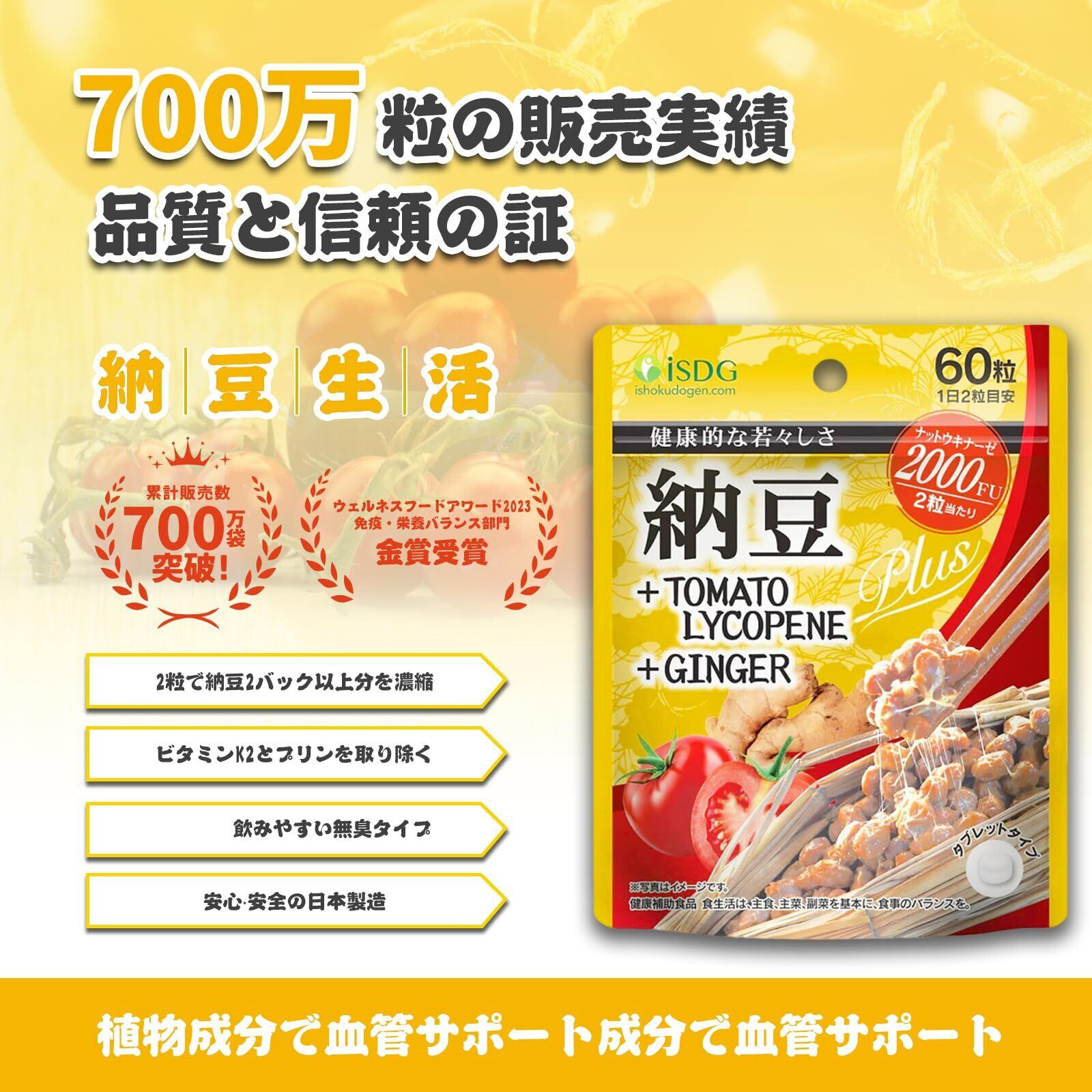 ISDG ナットウキナーゼ 2000FU 納豆+リコピン+ショウガエキス 60粒 30日分 納豆キナーゼ 納豆菌培養エキス 高活性 栄養補助食品 高齢者 日本生産 1個セット