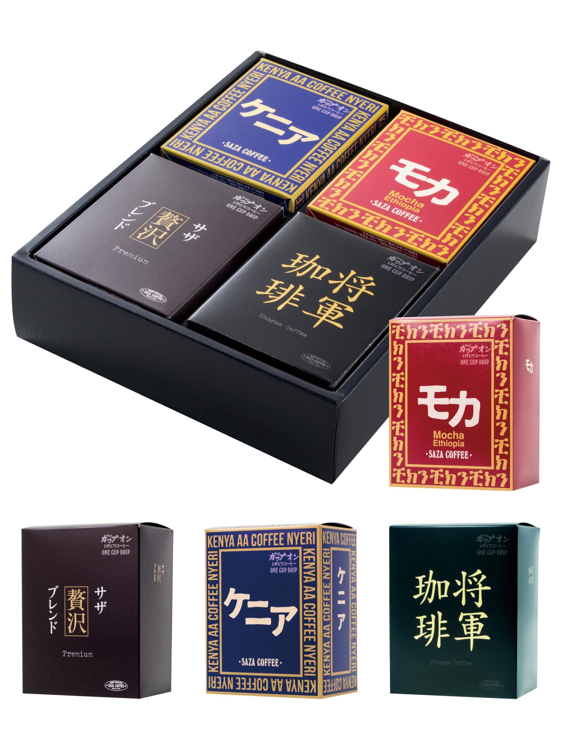 【 サザアフリカ将軍 詰合せ4箱(ケニア、サザモカ、贅沢、将軍) 】 サザコーヒー ギフト コーヒー ドリップ 各5枚入り ダークロースト 1杯取り ギフト 人気商品 バレンタイン ギフト プチギフト プレゼント カップオン 4種