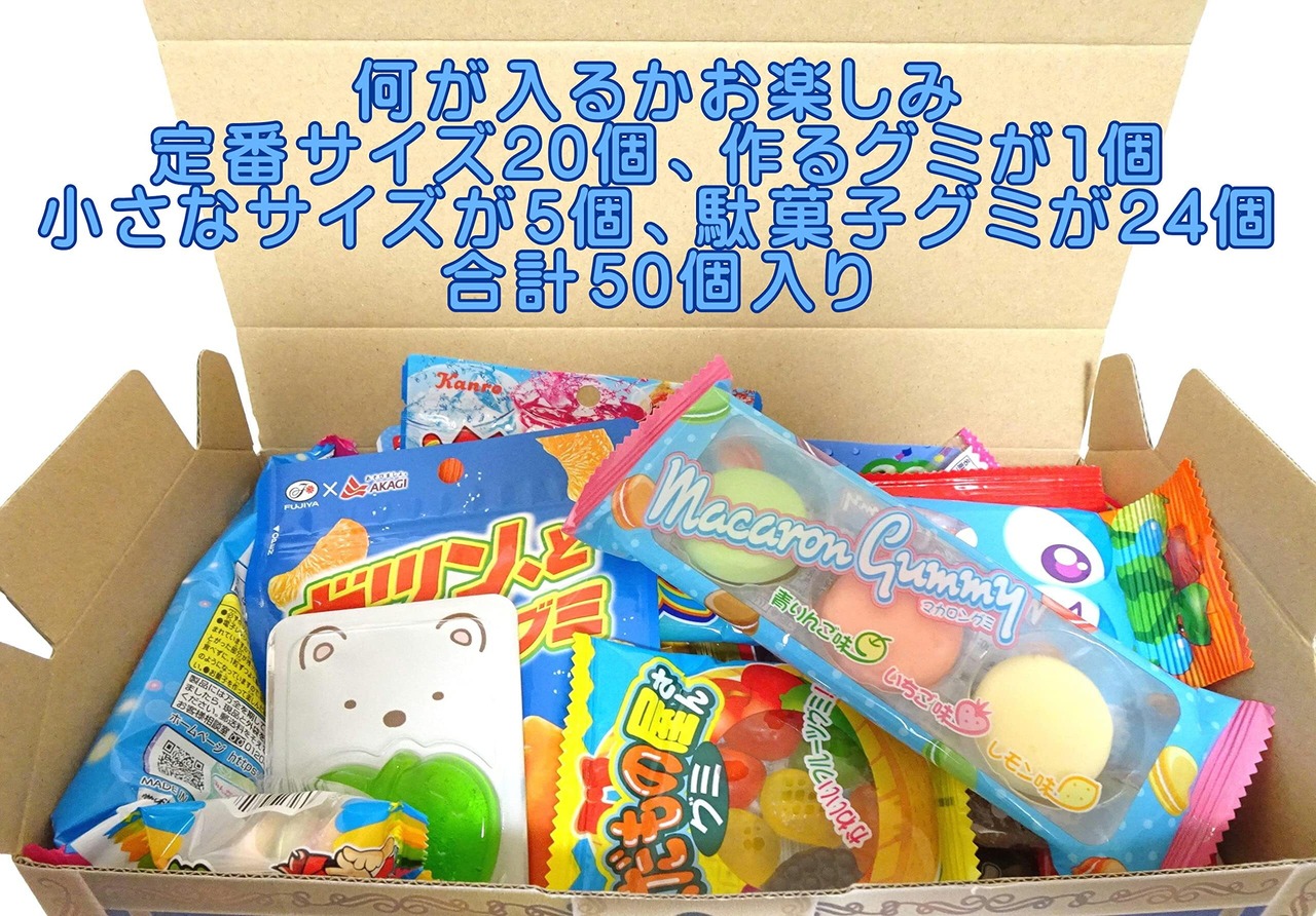 定番サイズが20個、作るグミが1個、小さなサイズが5個、駄菓子グミが24個 合計50個