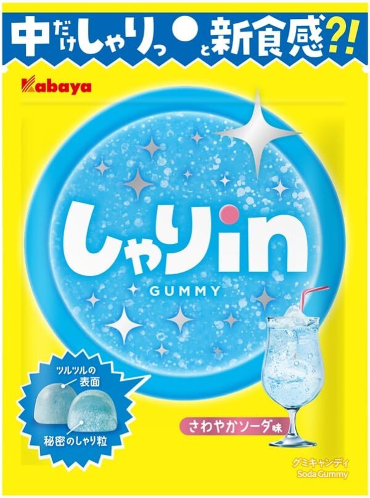 商品説明:グミの中だけしゃりっと新食感のソーダ味グミが新登場。見た目とのギャップに驚くこと間違いなしの、グミの中だけしゃりっと新食感のグミが新登場。