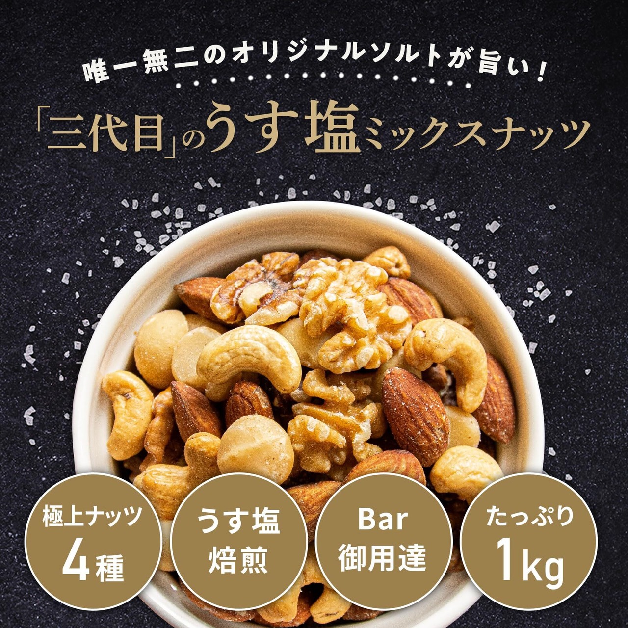 小島屋 厳選 ミックスナッツ 4種類 1kg うす塩 Bar 御用達 オリジナル 直火焙煎 ナッツ