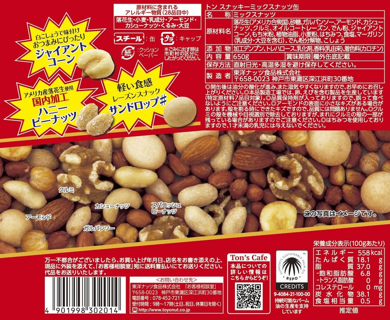 東洋ナッツ食品 スナッキーミックスナッツ缶 650g