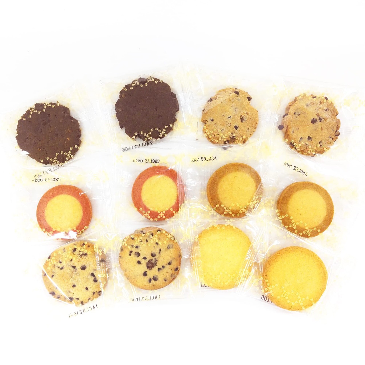 小麦粉(国内製造)、砂糖、バター、チョコレートチップ、卵、ショートニング、アーモンド、植物油脂、ミルクペースト、カカオマス、ココアパウダー、キャラメルソース、脱脂粉乳、食塩、加糖卵黄、いちごソース、キャラメルパウダー、いちごパウダー/膨脹剤、乳化剤、香料、着色料(カラメル、アカビート、コチニール)、増粘剤(加工デンプン)、酸味料、甘味料(スクラロース)、(一部に小麦・卵・乳成分・アーモンド・大豆を含む)