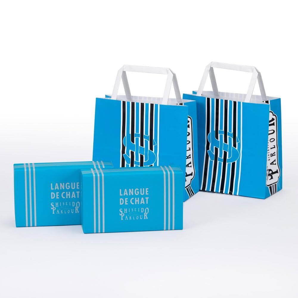 【商品について】ラング ド シャ10枚入を2箱と手提げ袋2枚を同封したセットです。手提げ袋は折りたたんだ状態で、包装紙で包まれたラング ド シャ10枚入2箱と一緒に保護用の箱の中に入っております。お手土産、ご自宅用としてご利用ください。(手提げ袋付きは出品者が資生堂パーラーの場合のみとなります)