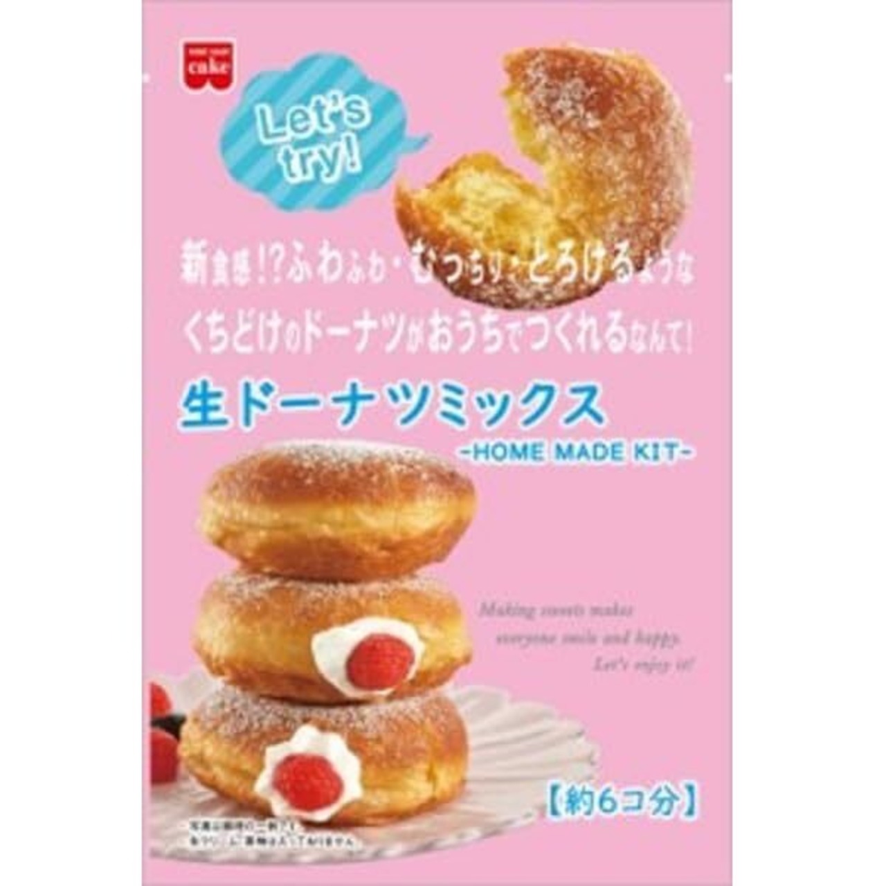 ふわっととろけるようなくちどけの新食感ドーナツがご家庭でつくれます。手作りならではの揚げたての美味しさは格別です!【出来上がり:直径約8㎝ 6個分】共立食品株式会社は製菓材料、ナッツ、ドライフルーツの輸入・加工・製造を一貫して行うメーカーです。レシピサイトや手づくりお菓子コンテストなども展開しており、“食”を楽しむ時代へ多彩なシーンを提案しています。