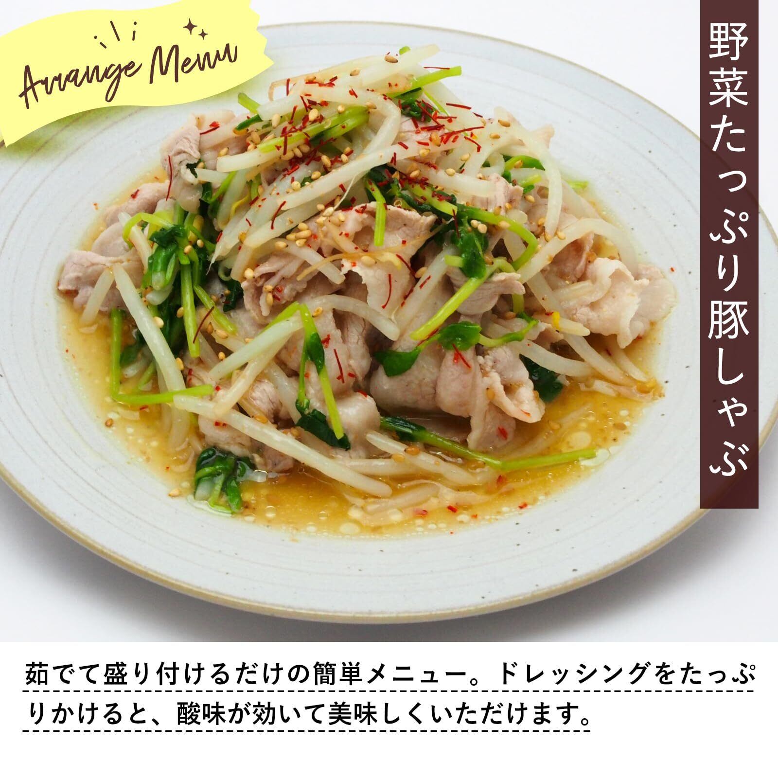 原材料:食用植物油脂、醸造酢、砂糖類(ぶどう糖果糖液糖、砂糖)、食塩、ガーリックペースト、しょうゆ、みそ、ごま、こんぶエキス、香味食用油/調味料(アミノ酸等)、香辛料抽出物、増粘剤(キサンタンガム)、(一部に小麦・ごま・大豆を含む)