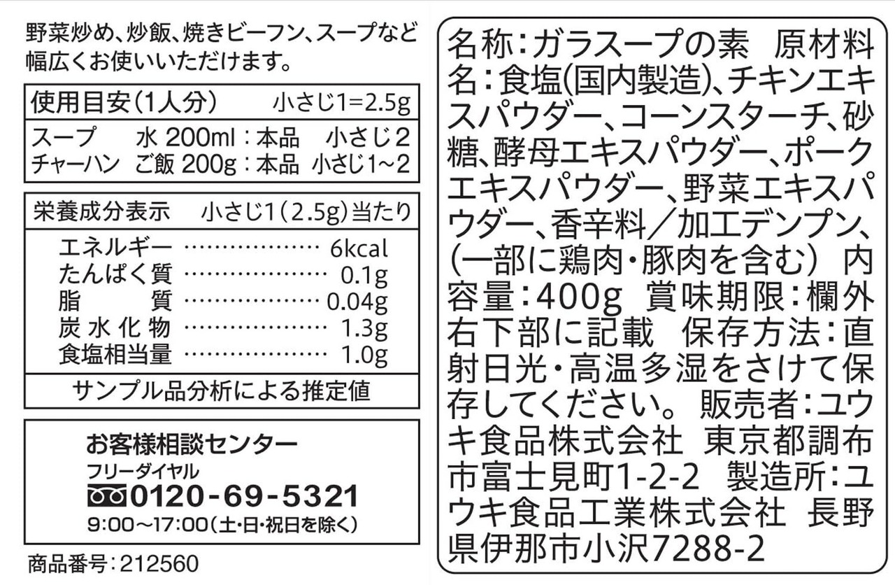 ユウキ食品 やさしい味わいのガラスープ 400g