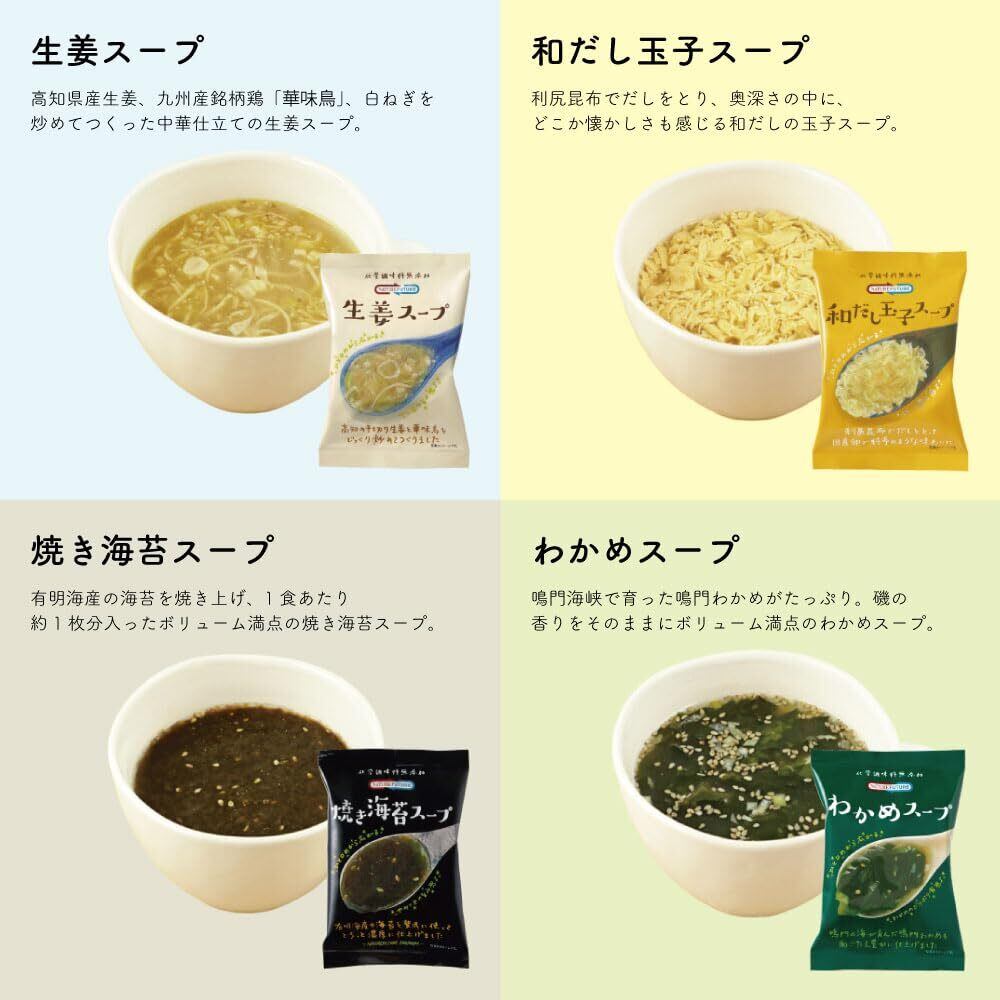 風味 ビーフ, 生姜, オニオン, タマゴ, わかめ, のり, ミネストローネ