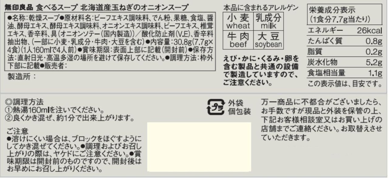 無印良品 食べるスープ 北海道産玉ねぎのオニオンスープ 4食分 83965723