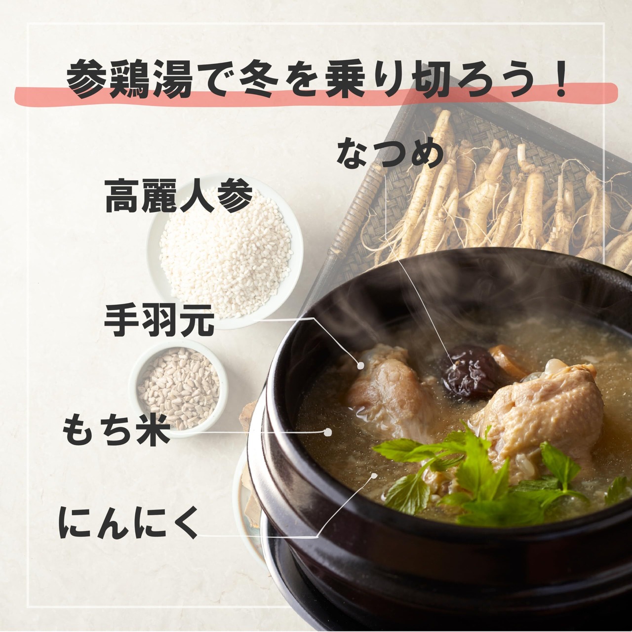 韓国美人の元気の秘訣はなんと言っても参鶏湯!そんな参鶏湯を手軽に召し上がっていただきたいという気持ちから、手羽元2本が入った食べやすい1食分を作りました。