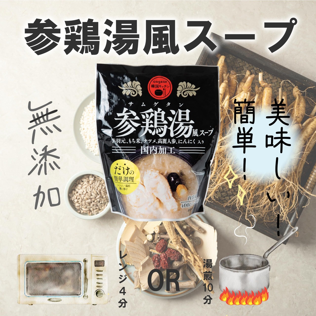 参鶏湯風スープ サムゲタン400g (3袋) 無添加食材 日本国内加工 韓国料理 本格薬膳料理 オンガネジャパン