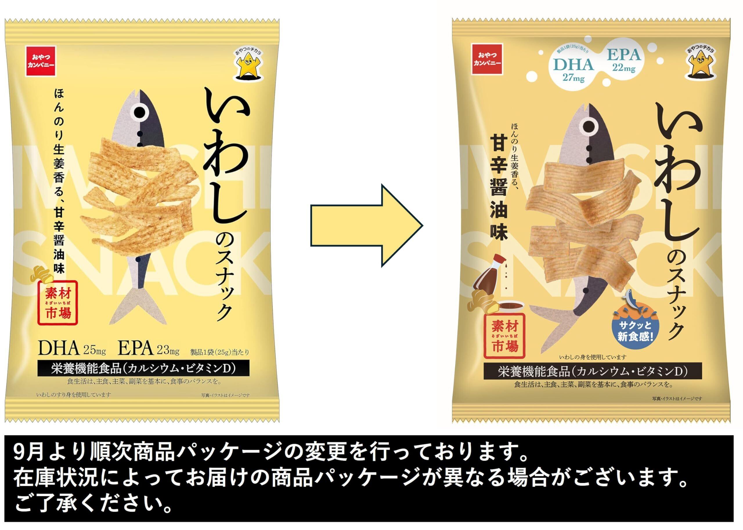 大好評につき、持ち運びに便利な小袋タイプを発売します。いわしのすり身を生地に練り込み、ほんのり生姜の風味が香る甘辛い醤油味に仕上げました。オメガ3(オメガスリー)脂肪酸に分類されるDHA、EPAや、カルシウムが含まれています。※栄養機能食品(カルシウム、ビタミンD)