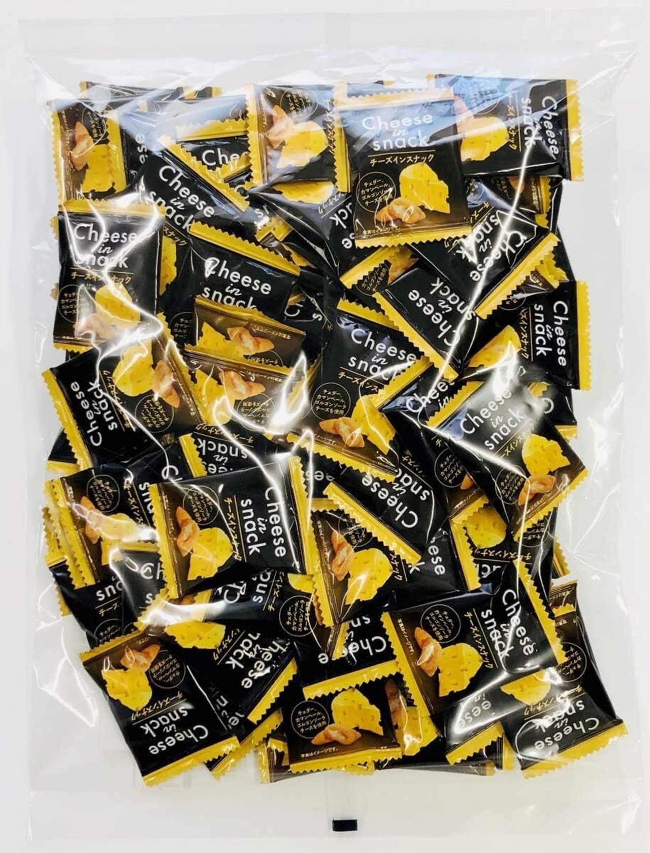 原材料:チョコレートコーチング(乳糖、植物油脂、チーズパウダー、全粉乳、ココアバター、食塩)、小麦粉、植物油脂、コーングリッツ(遺伝子組み合えでない)、砂糖、小麦ファイバー、チーズシーズニング(食塩、砂糖、クリーミーパウダー、チーズパウダー、たん白加水分解物、酵母エキスパウダー)、チーズパウダー、食塩、酵母エキスパウダー/トレハロース、調味料(アミノ酸等)、香料、乳化剤、着色料(アナトー、パプリカ色素)、炭酸カルシウム、甘味料(スクラロース)、(一部に小麦・乳成分・大豆を含む)