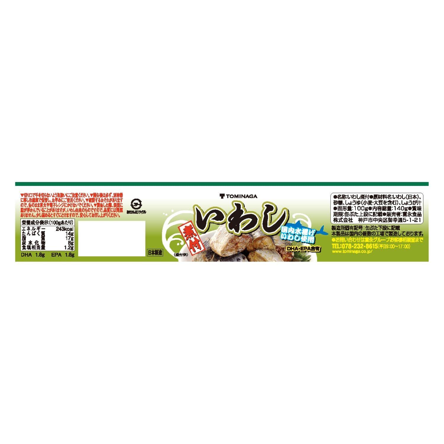 トミナガ いわし 煮つけ 缶詰 DHA EPA 含有 140g ×6個 [ 富永 国内水揚 国内加工 イワシ缶 缶詰 TOMINAGA ]
