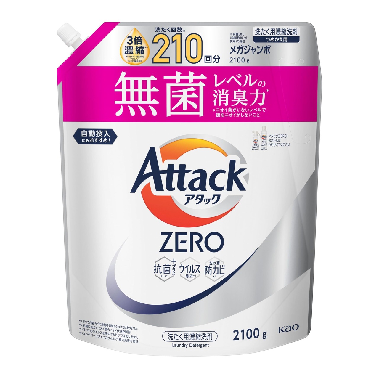 アタックZERO アタック液体史上 最高の清潔力。無菌レベルの消臭力 詰め替え 2100g