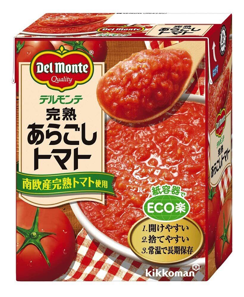 南欧産の真っ赤に完熟したトマトをまるごとあらごししました。あらいトマトの果肉が素材によく絡みますので、トマト味をしっかりつけたいパスタや煮込みメニューにおすすめです。 使い勝手がよく、地球に優しい紙容器です。軽くて手で簡単に開けられ、家庭での保管場所も取りません。