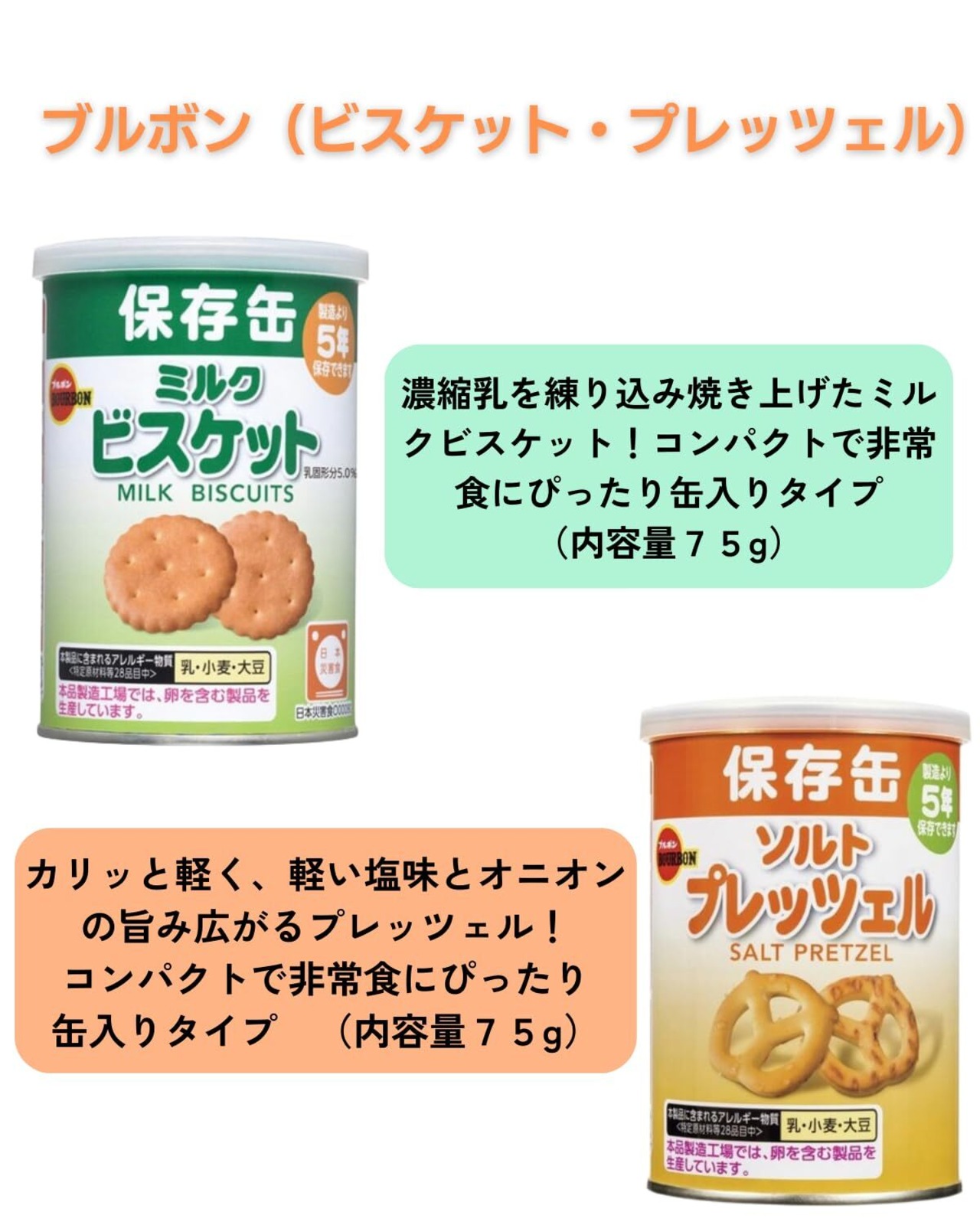 各種コンパクトサイズで非常時の持ち運びにも便利。再封可能な蓋付きになっています。有事の際の備えとして最適です。