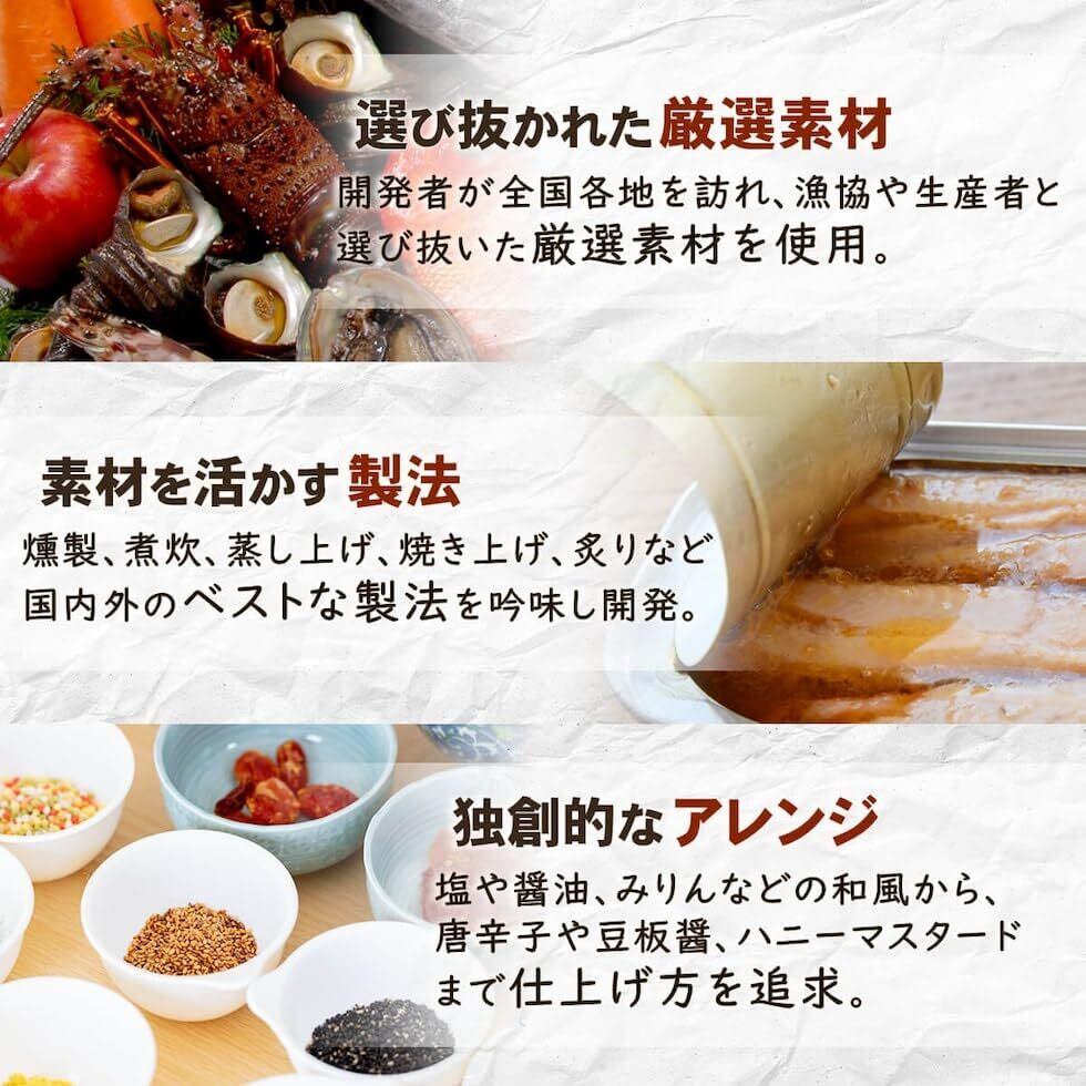 缶つま の中でも特に 人気 の6缶には 酒のつまみ はもちろん 副菜 お惣菜 ご飯のお供 にも。 かんつま には 魚介 お肉 や 桜チップで 燻製 した 缶つまsmoke などがあり、 お好みの お酒 で贅沢な 晩酌 の時間を。